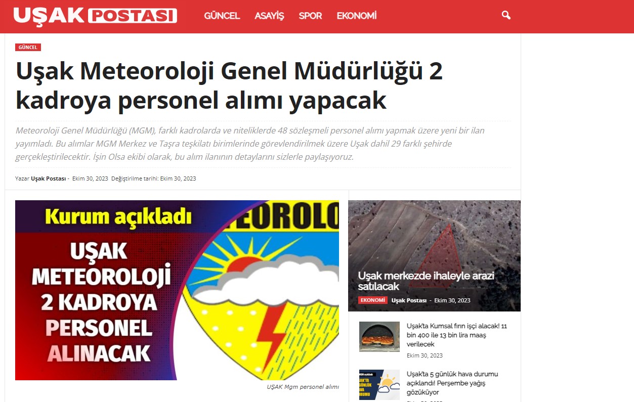 MGM, 29 farklı şehirde gerçekleştireceği 48 sözleşmeli personel alımı için başvuruları kabul ediyor.